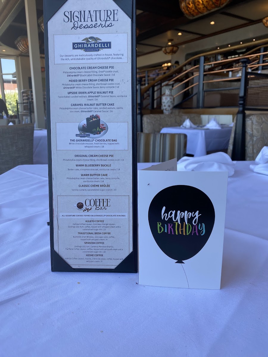 Desserts range from seasonal cheesecake and pineapple brown butter cake to chocolate silk pie and upside-down candied walnut apple pie. Standard condiments are provided as part of the menu offerings.